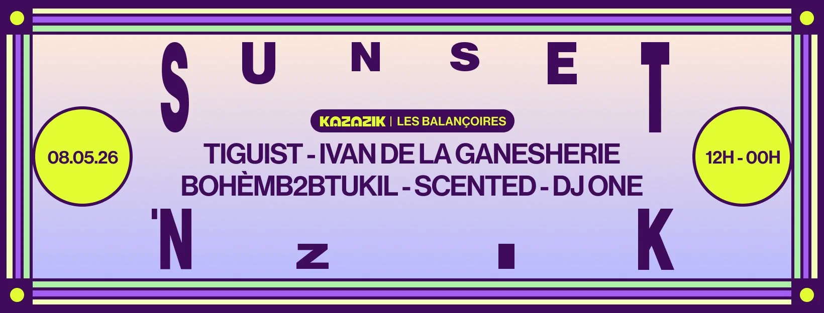 Retrouvez aux platines : Tiguist, Ivan de la Ganesherie, Bohèm, Tukil, DJ One et l’un des fondateurs de Kazazik, Scented, de retour pour l'occasion ! 🎧